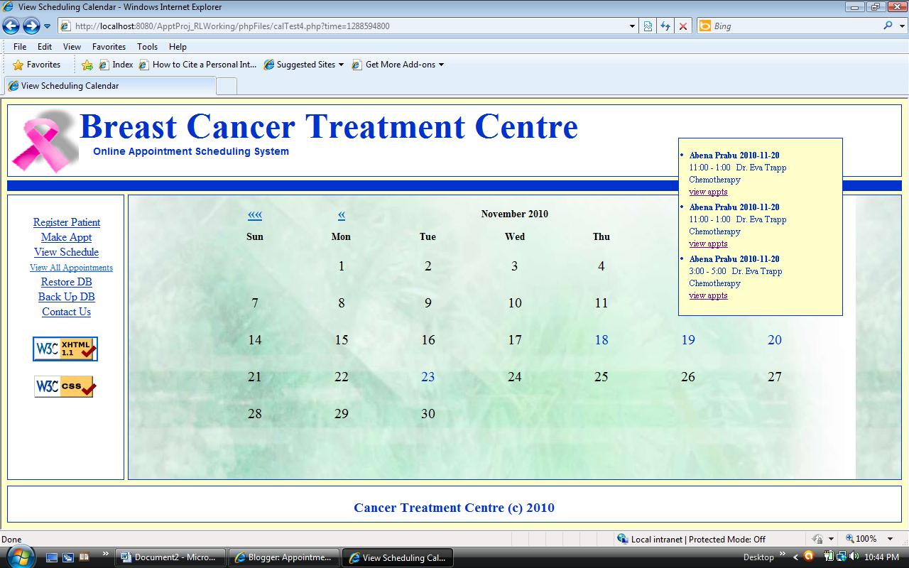The delete and edit appointment links on the pop-up was changed and moved to the views instead. so now the views for all the appointments listed and the appointments for the day will now be used to edit and delete appointments.